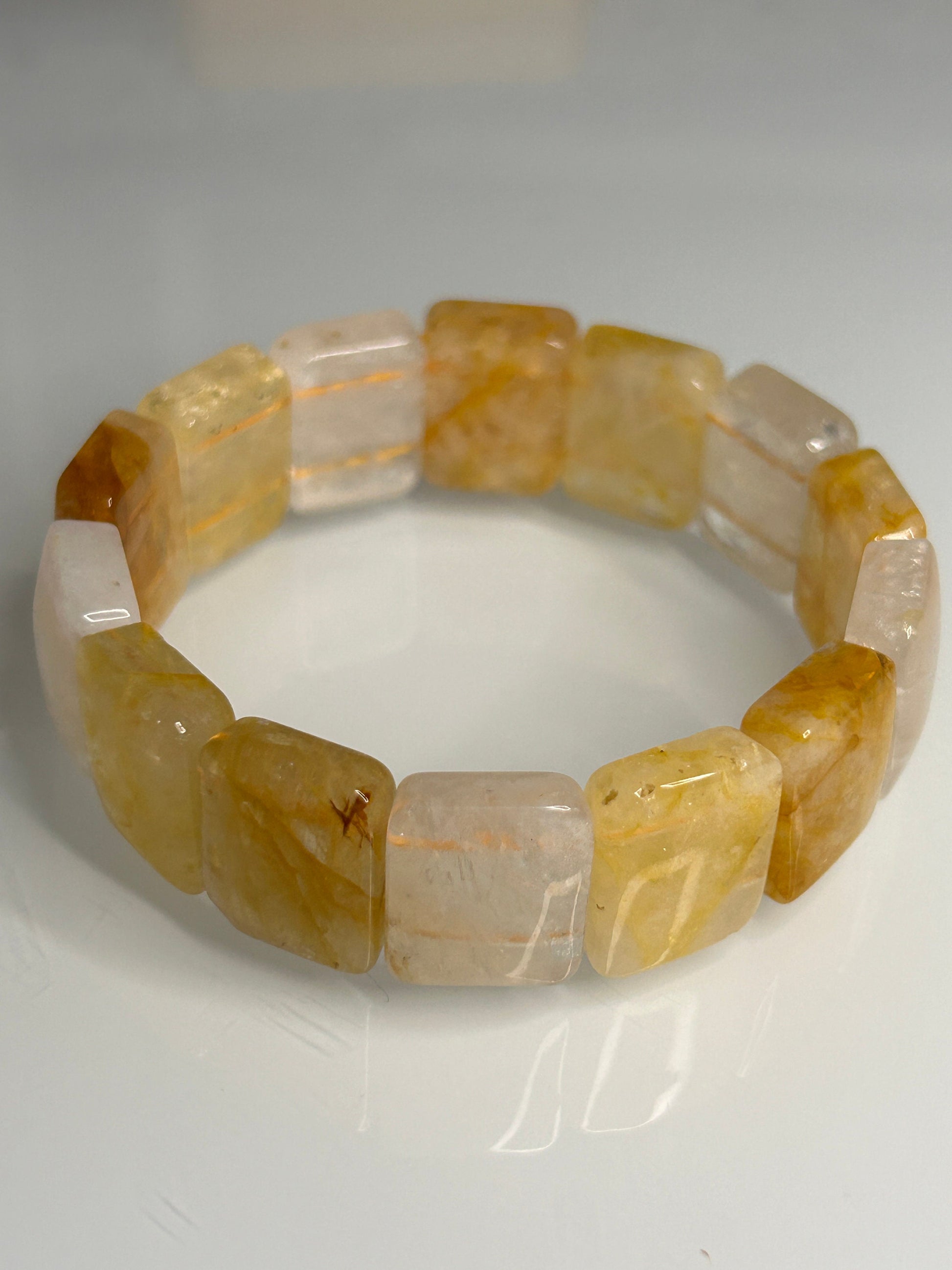 17MM Square Soft Bangle, Golden Healer Bracelet | Golden Healer Quartz crystal point beaded gemstone bracelet | Gift for Her, Gift for MOM
