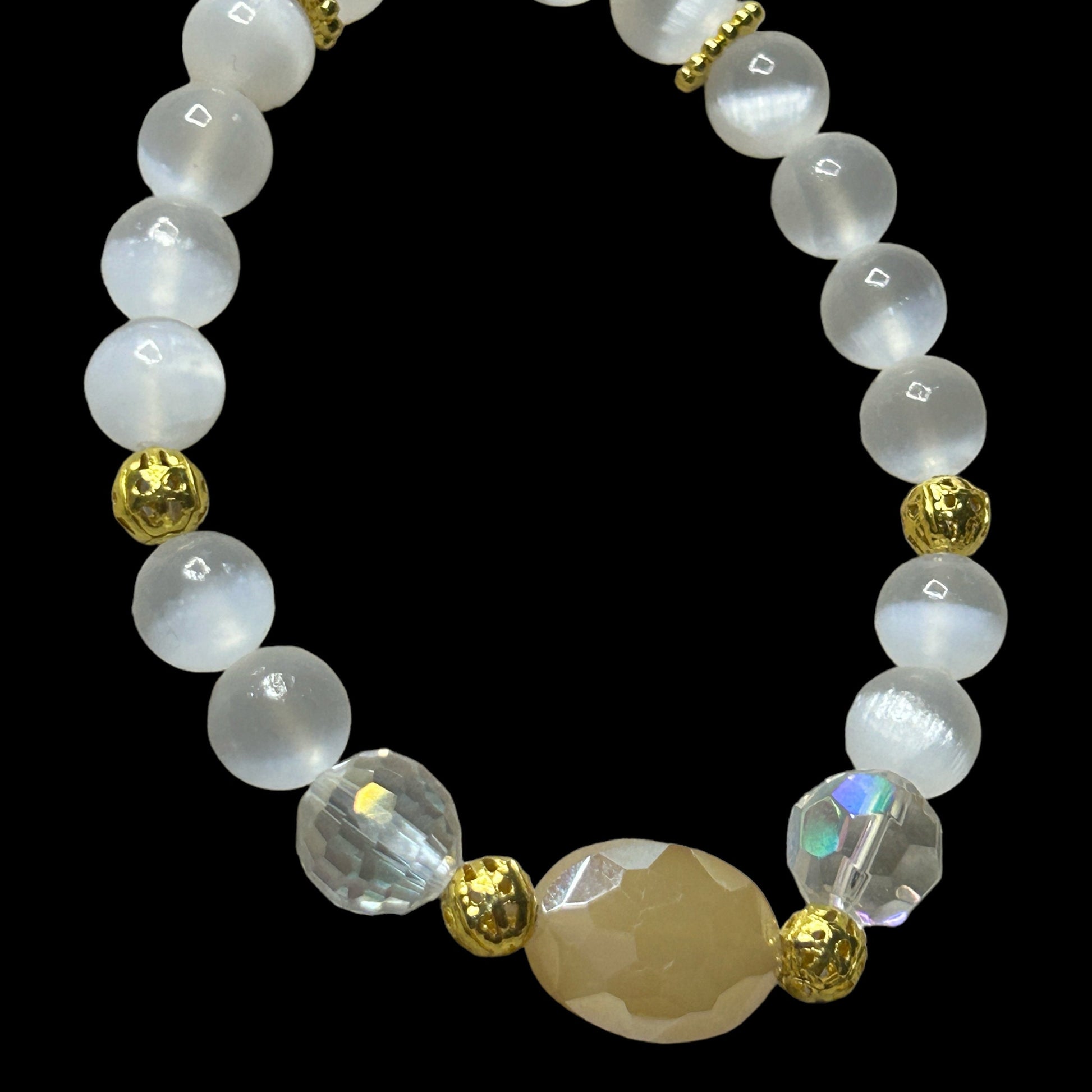 8mm Selenite & Faceted Agate, Bead Bracelet Round Crystals (Premium Grade Stretch Gemstone Bracelet, Selenite Crystal Bracelet) Gift for her