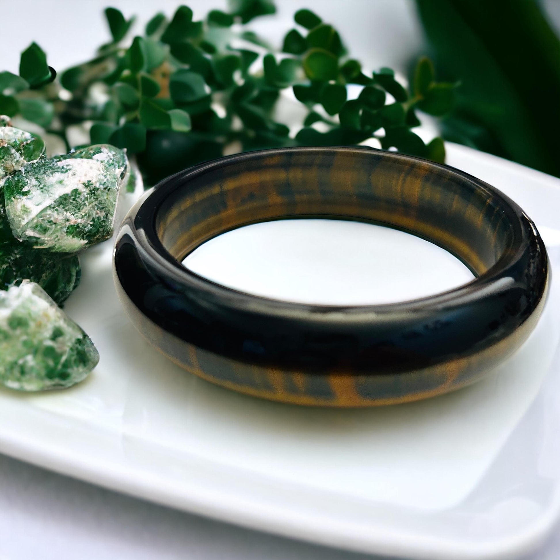 Elevate your jewelry collection with our stunning AAA Tiger Eye Bangle, a captivating blend of natural beauty and timeless elegance. With a 65.3mm size, this exquisite bangle showcases the enchanting golden and brown hues of Tiger Eye, a gemstone renowned for its protective and grounding properties.