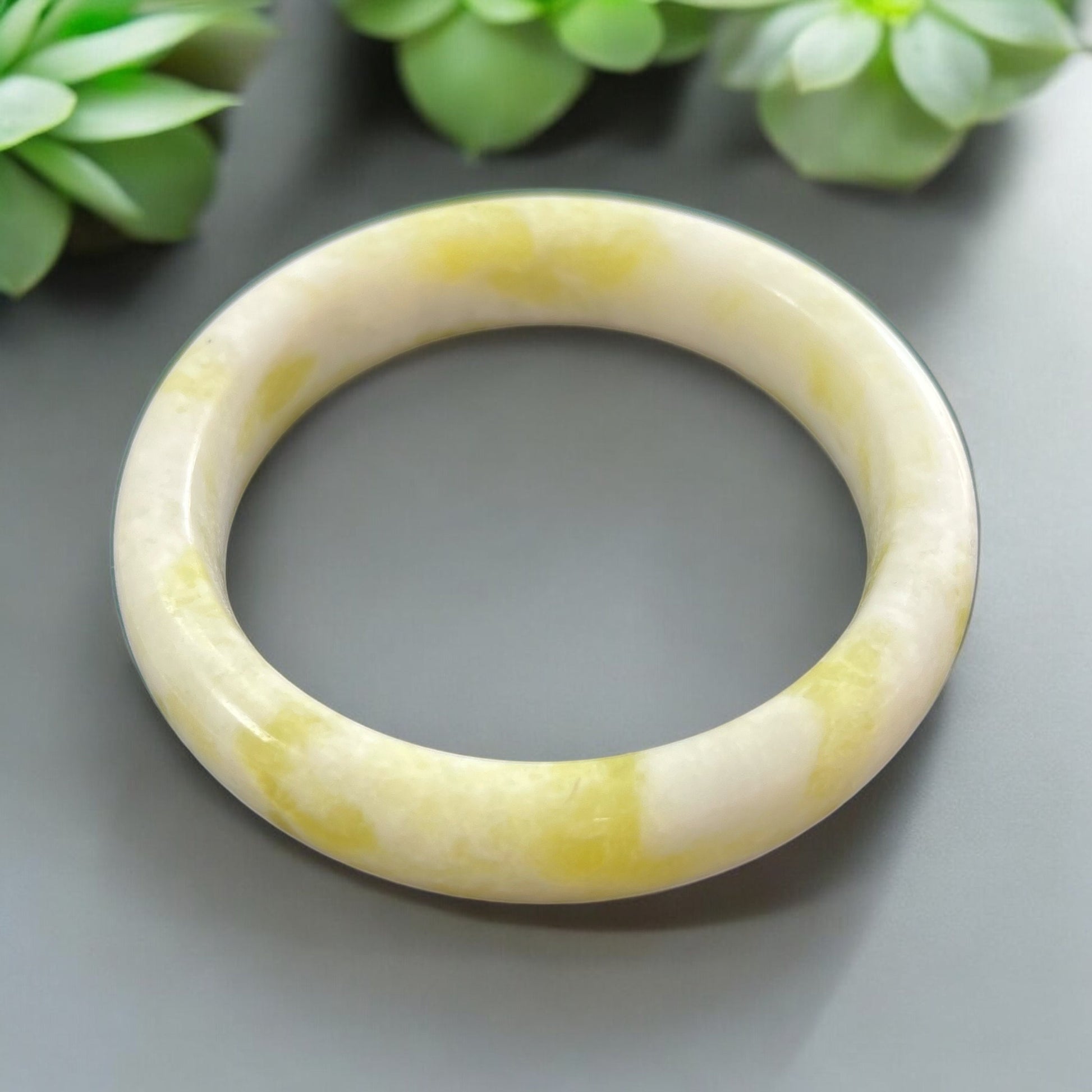 Beautiful handcrafted cauliflower jade bangle for large wrists. Premium crystal healing jewelry perfect as a gift. Natural jade bracelet with spiritual properties.