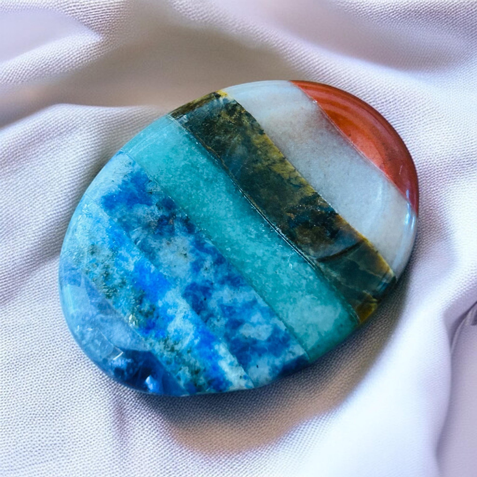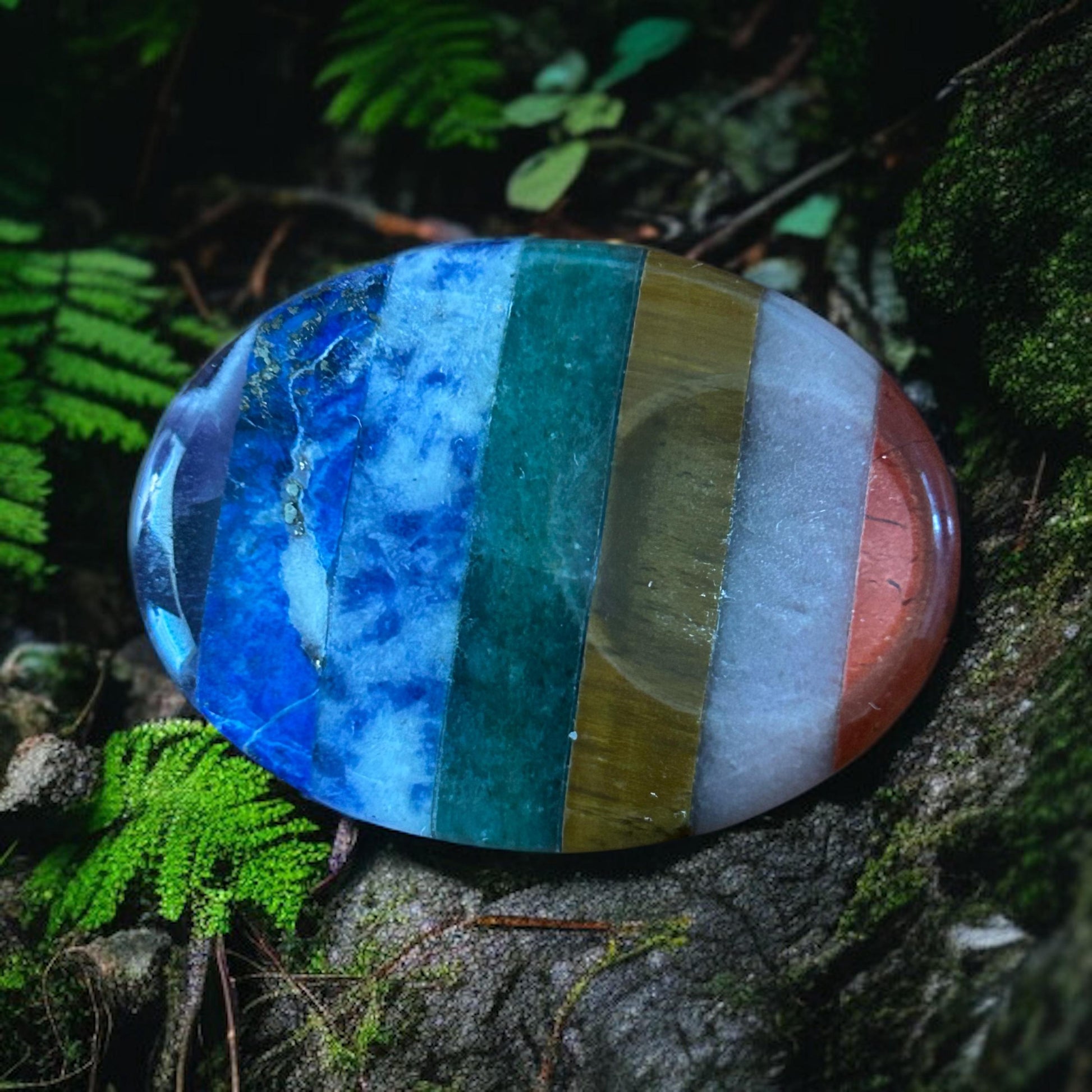 Multi-layered chakra stone (includes tones of Red Jasper, Aventurine, Lapis, and more)