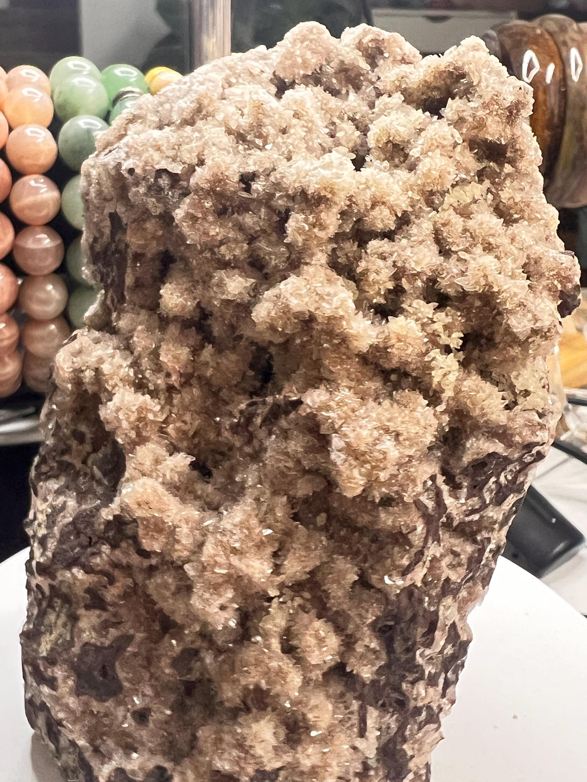 Elevate your space with the Crystalline Crunch Delight, a stunning natural Calcite crystal cluster that radiates calming energy and showcases intricate crystalline formations. With its beautiful translucent tones and natural texture, this piece is perfect for enhancing your spiritual practice, cleansing your environment, or adding a unique touch to your home decor.