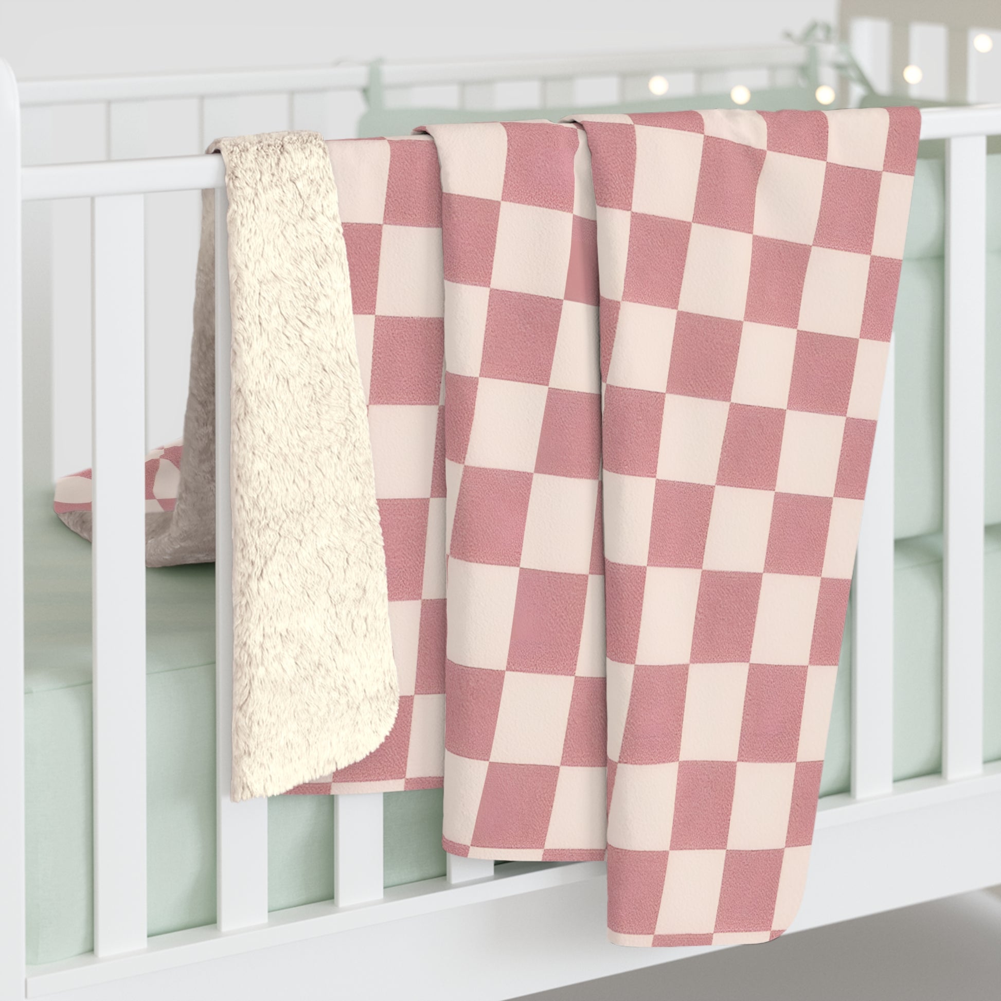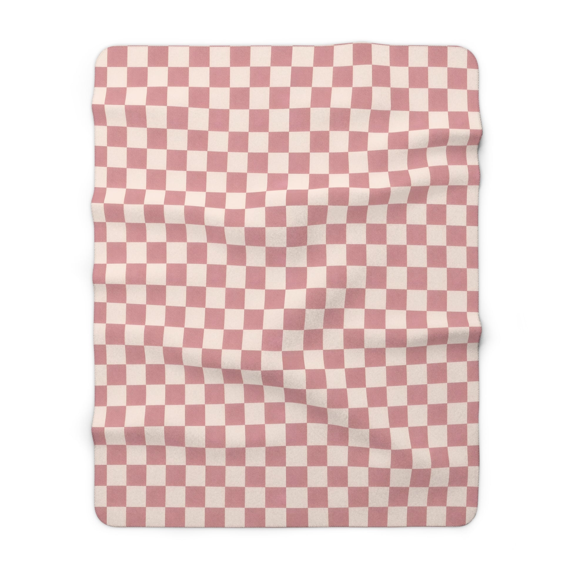 Dusty Pink Checkerboard Sherpa Throw – Cozy Coquette & Danish Pastel Aesthetic Blanket