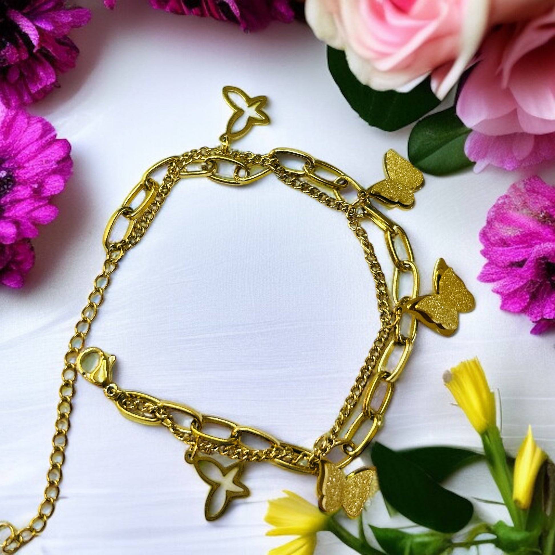 Golden Flutter – Butterfly Charm Chain Bracelet