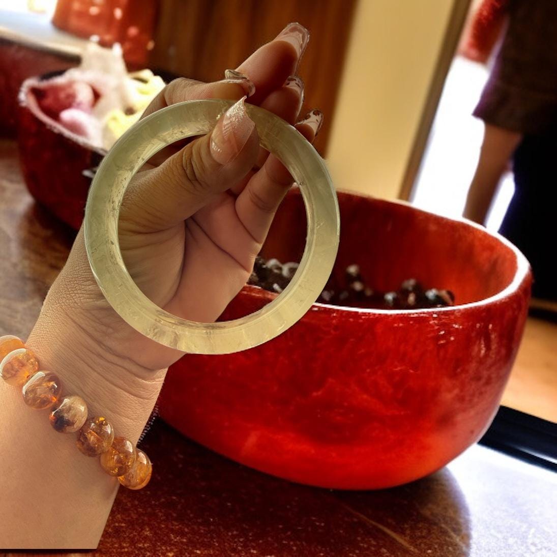 This bangle has an elegant and calming presence. It gives sunrise in stone form. Perfect for everyday wear or stacking.