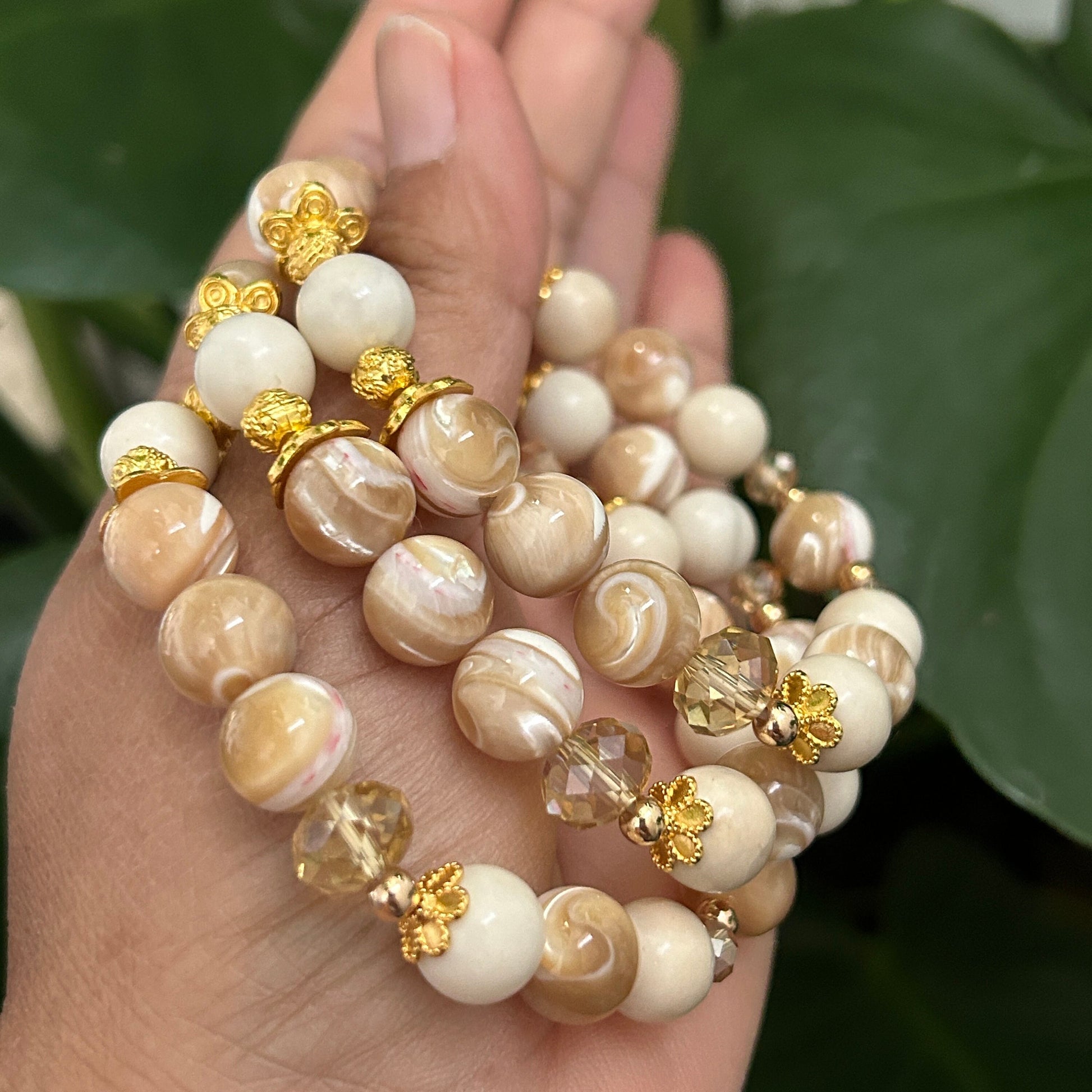 Premium Quality: Crafted with high-quality 10mm Mother of Pearl and Ivory Jade beads, ensuring durability and a luxurious feel.