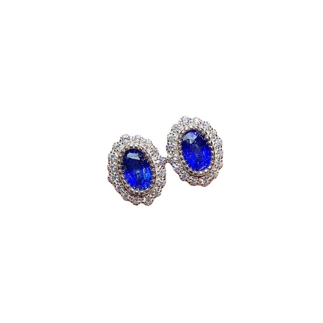 Natural Sapphire Stud Earrings S925 Silver Inlaid Main Stone