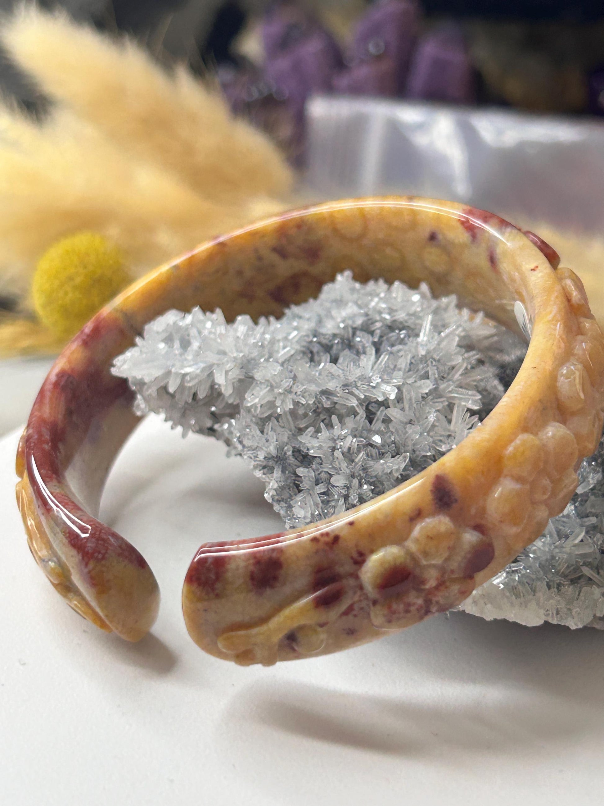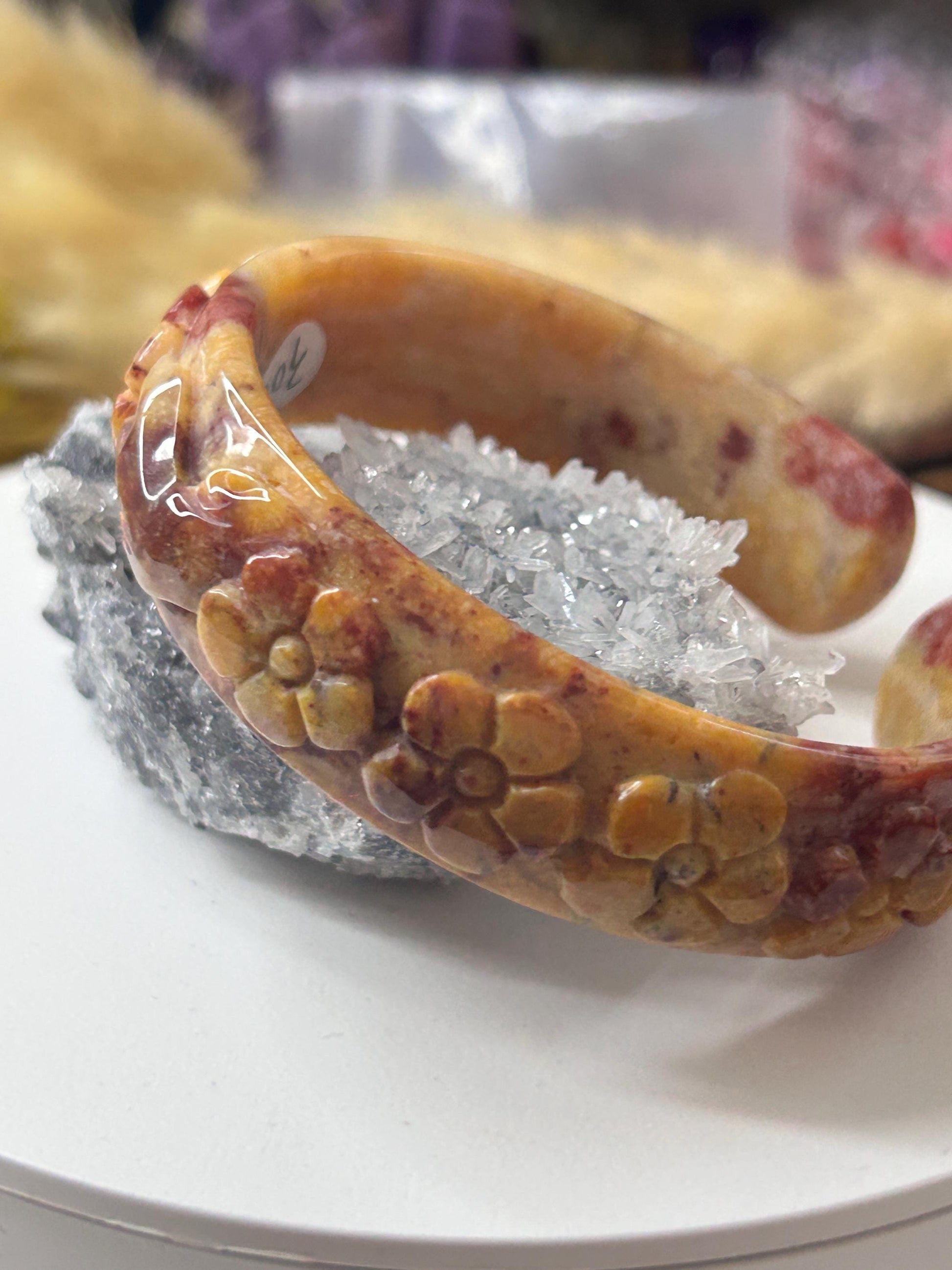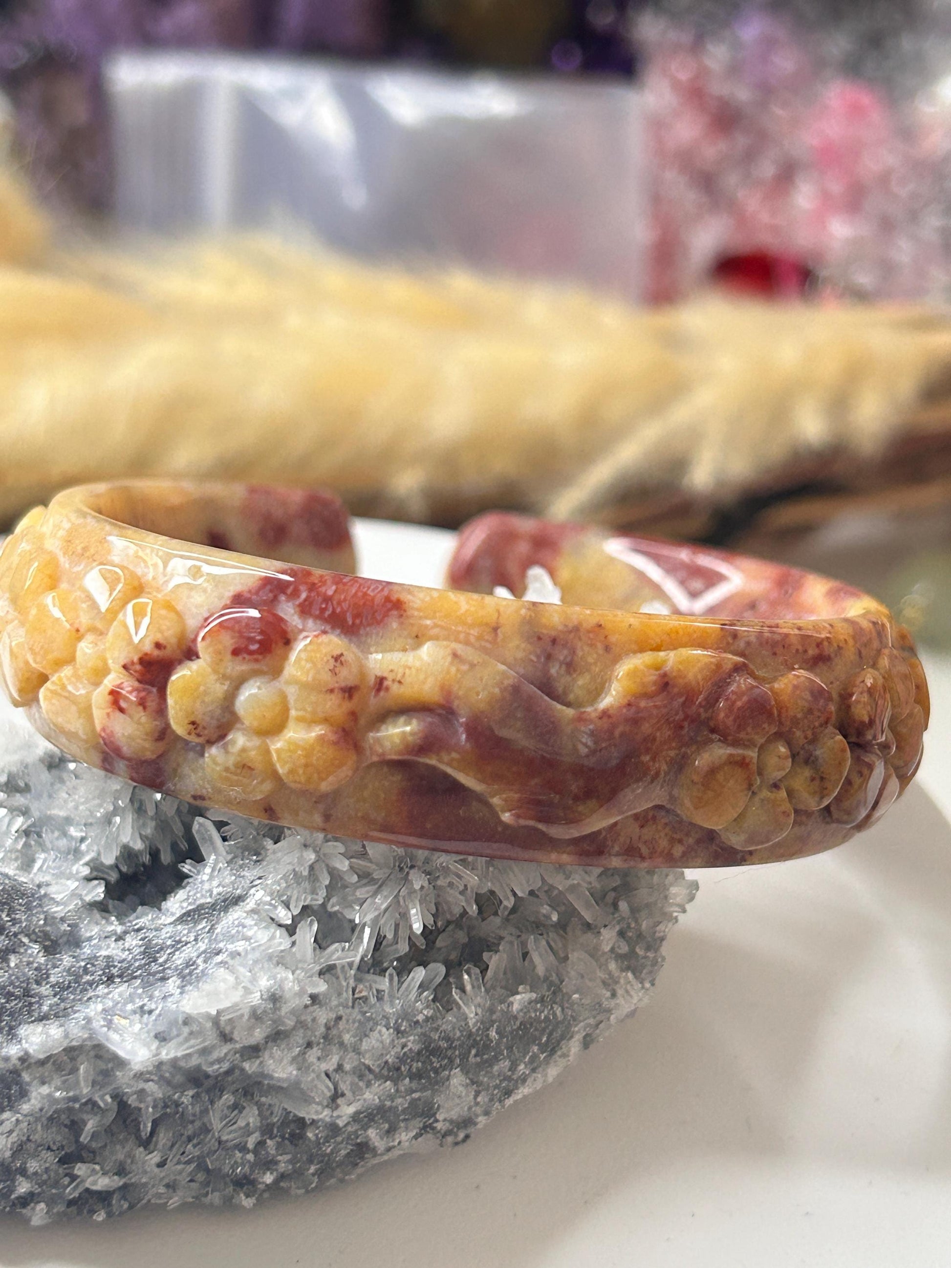 Small size 56.1 mm Bangle Red Flower Bakelite Deep Carved | Coral Jade | Bangle Bracelet | Gift for her |Flower Carved | Crystal Bangle