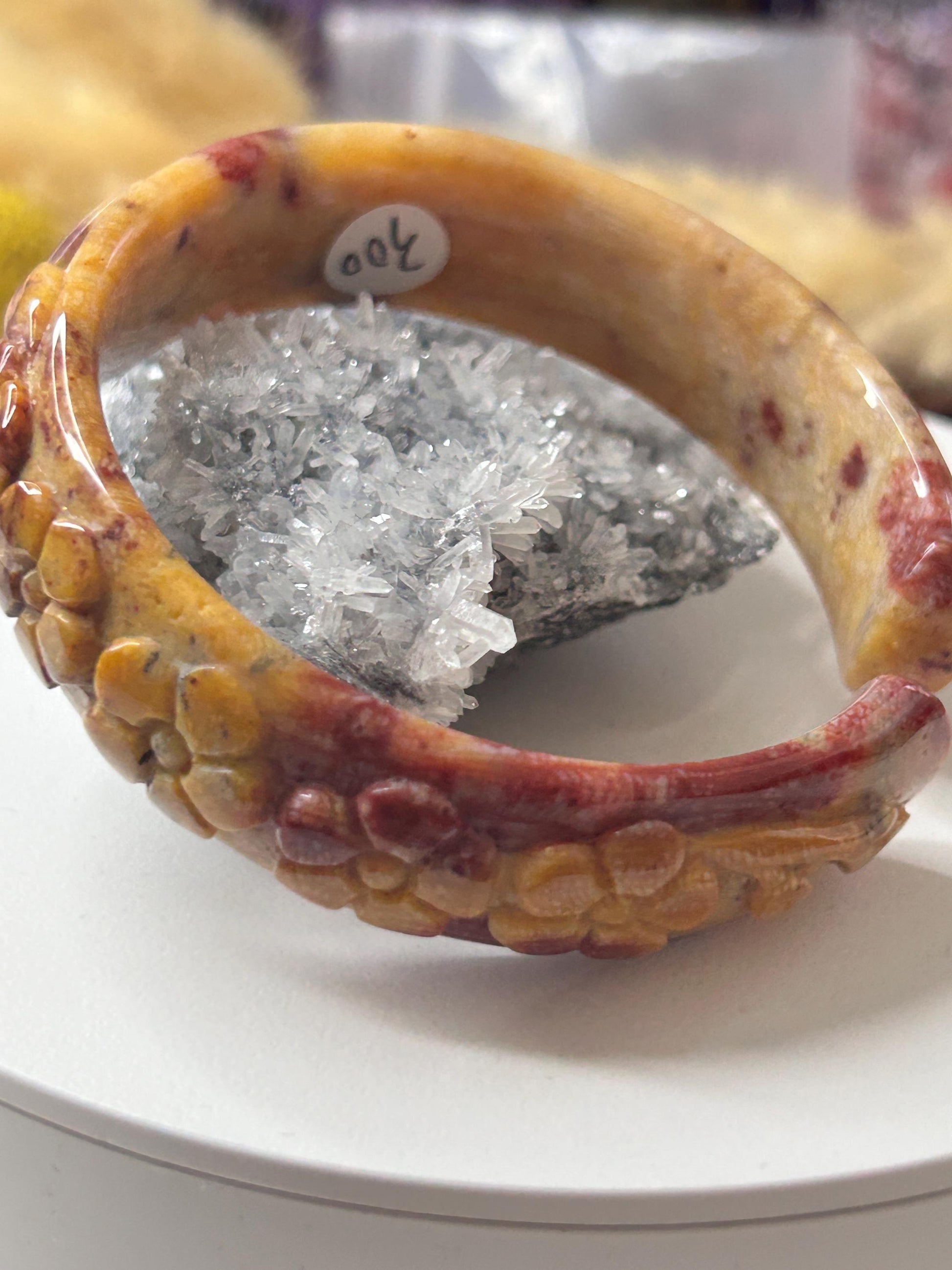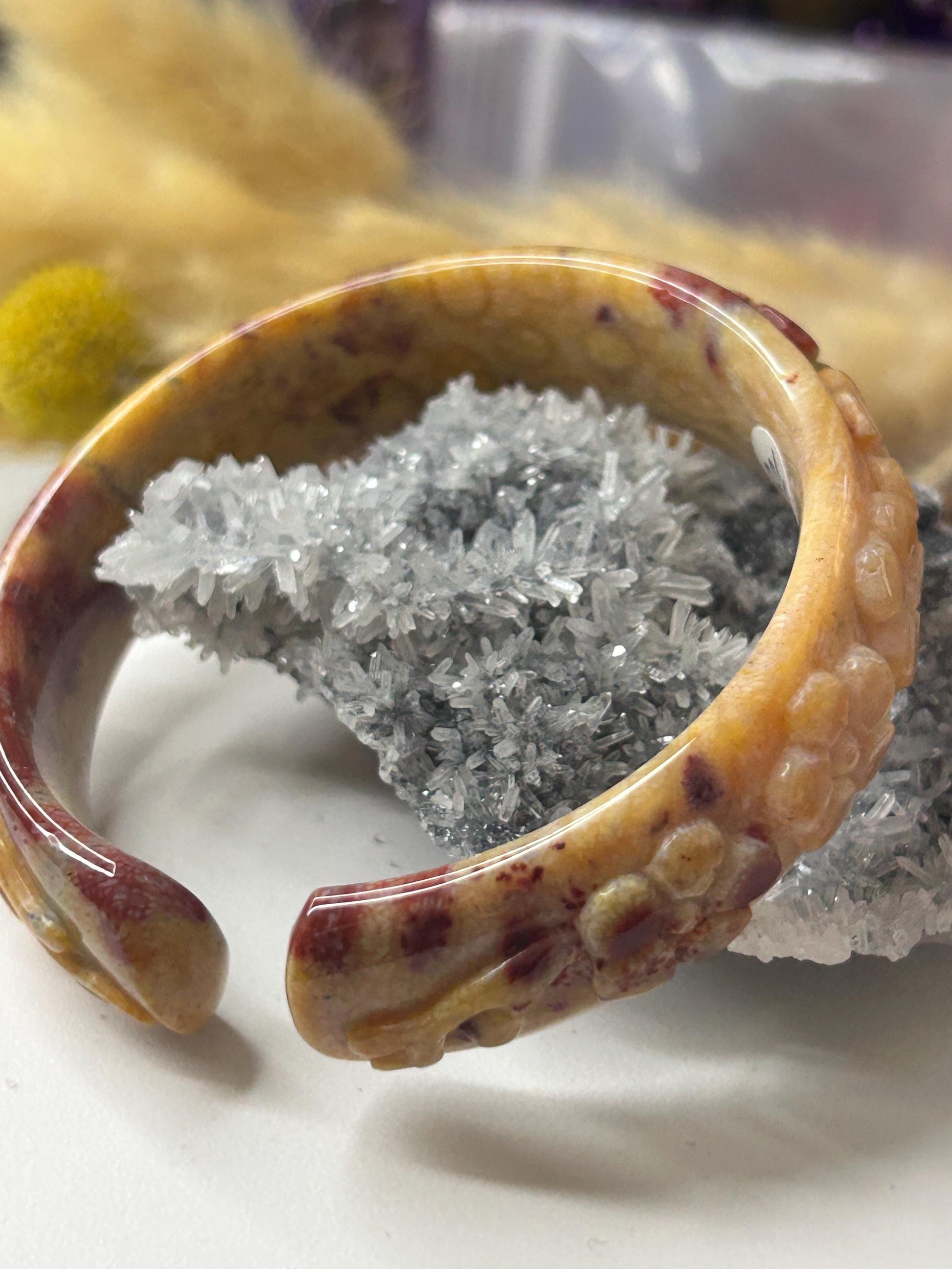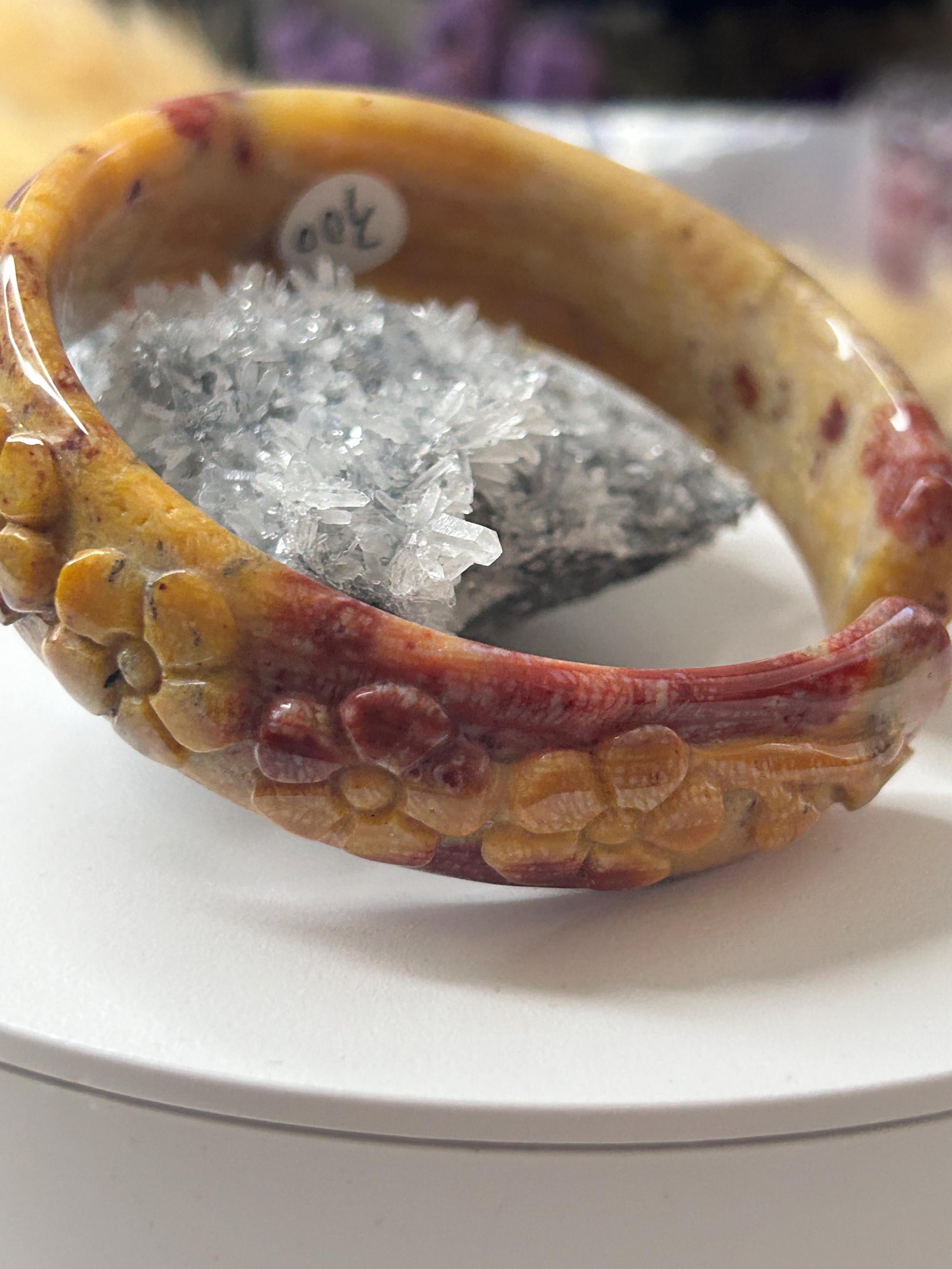 Small size 56.1 mm Bangle Red Flower Bakelite Deep Carved | Coral Jade | Bangle Bracelet | Gift for her |Flower Carved | Crystal Bangle